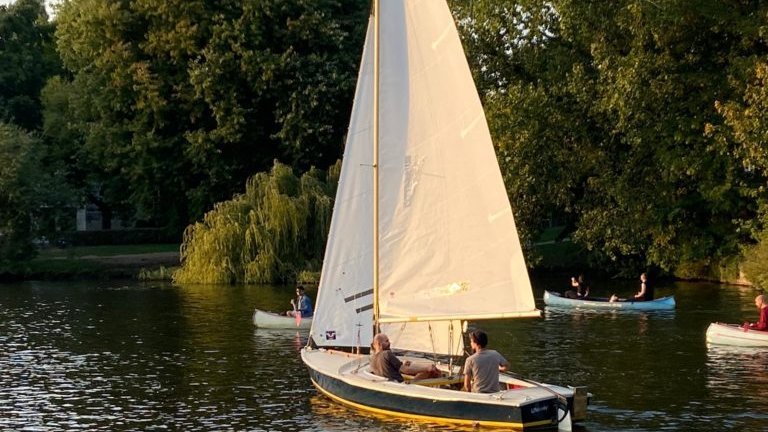 Seit Juli 2020 gehört der Schwert-Zugvogel “Pinnau” zu unserer Alsterflotte. Nach vielen Abenteuern in den Tidengewässern der Elbe kommt die Pinnau nun am Unisteg an der Alster für den ASC-TU zum Einsatz. Dort kann sie für 16€/Std., mit Vereinsarbeit für 11€/Std. gesegelt werden. Den Unisteg findet Ihr an der Herbert-Weichmann-Straße 79 in 22085 Hamburg.